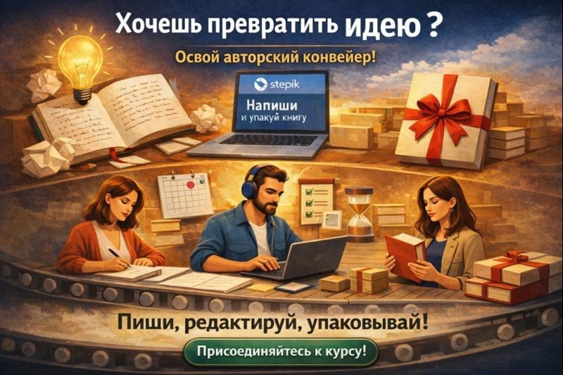 Если вы давно мечтали написать книгу — сейчас подходящее время превратить идею в профессиональный проект. Курс на Stepik поможет пройти этот путь уверенно, структурировано и с понятным результатом.
